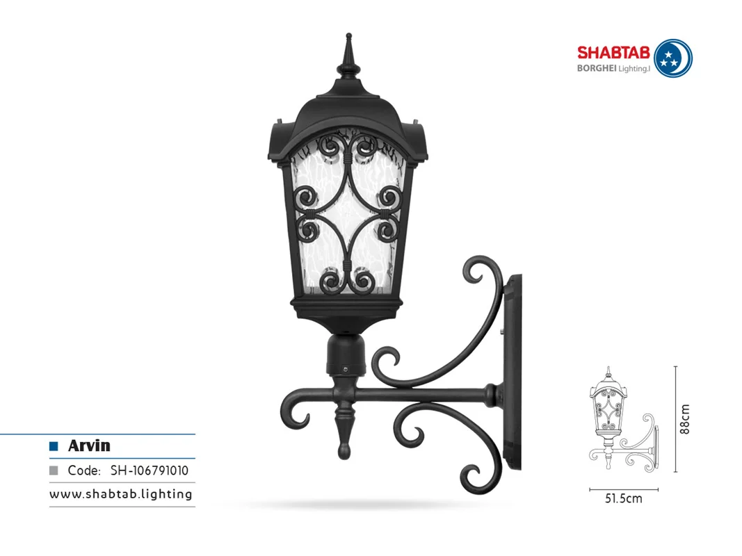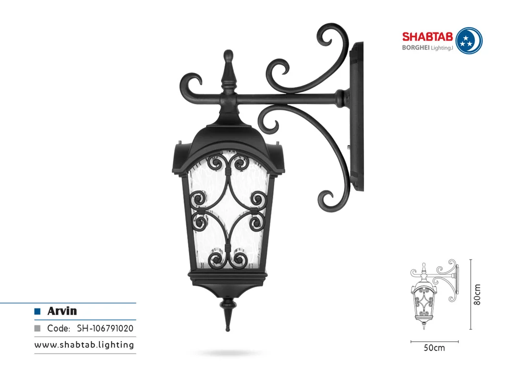 چراغ آروین یکی از ظریف‌ترین و جزئی‌ترین نقوش را در بین چراغ‌های مجموعه روشنایی شب تاب دارد. همچنین خوب است بدانید جنس بدنه‌ی آن آلومینیوم است و به شیوه‌ی ریخته‌گری دایکست تهیه می‌شود؛ شیوه‌ای که با استفاده از آن قطعات و فرم‌های طریف به دست می‌آیند. شیب‌دار بودن سطح این چراغ محوطه‌ای، آب باران و برف را به راحتی دفع می‌کند و آن را در برابر تغییرات جوی و مخاطرات طبیعی حفظ می‌کند. شما می‌توانید چراغ آروین را برای ویلا، باغ یا محوطه‌ی دفتر کاری خود در انواع چراغ آویز، چراغ سردری، چراغ پارکی و چراغ چمنی تهیه کنید. همچنین می‌توانید متناسب با دیزاین فضایی که در اختیار دارید، علاوه بر رنگ‌های سفید و مشکی، از این محصول در رنگ‌های برنز یا مسی نیز خریداری کنید.