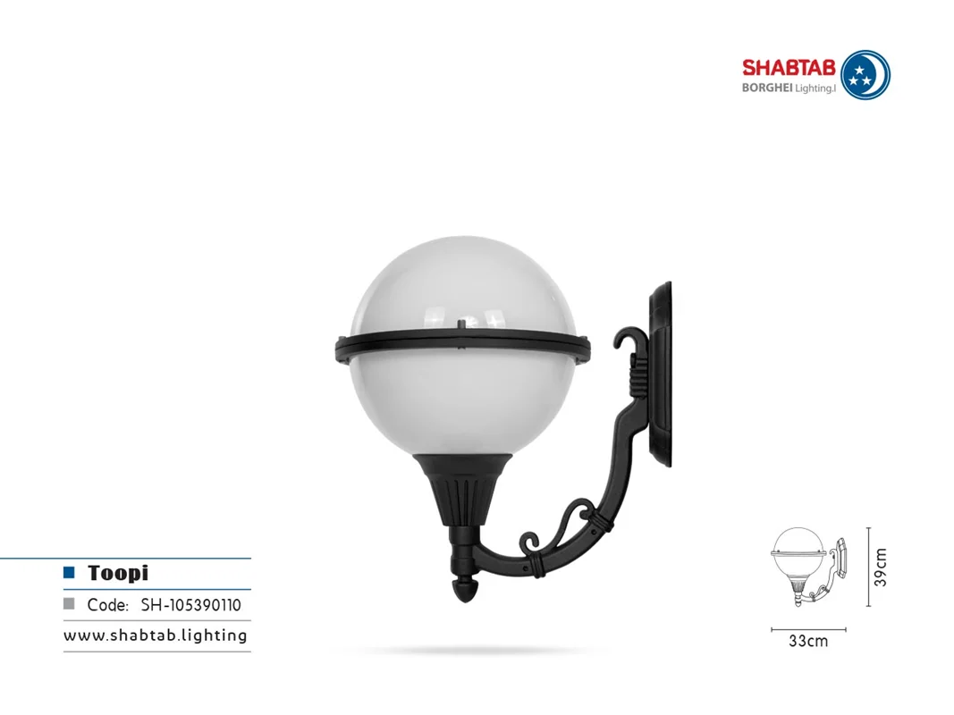 ویژگیهای چراغ توپی: حباب مقاوم در در برابر UV و ضربه دارای سرپیچ استاندارد سرامیکی بدنه محکم و بادوام از جنس آلومینیوم دایکست پوشش بدنه رنگ پودری الکترواستاتیک (مقاوم در برابر UV) استفاده از نوار سیلیکونی بین حباب و بدنه جهت جلوگیری از نفوذ آب و گرد و غبار نصب و نگهداری آسان بازدهی مناسب نور