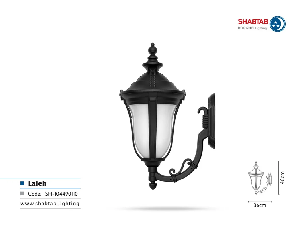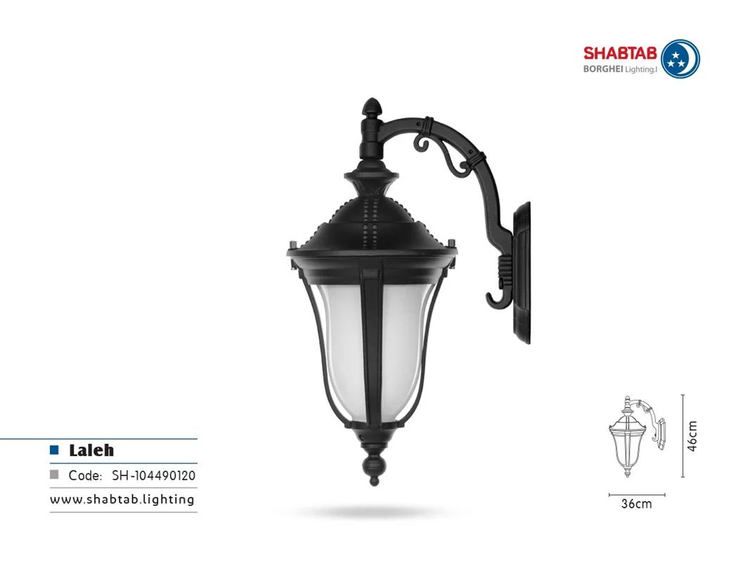 چراغ شب تاب مدل لاله با شاخه ی زیبای مدل کلاسیک و فانتزی سربالا و سرازیر و پایه چراغ سرو و ترنج ترکیب می شود و کالکشن دیدنی چراغ های محوطه ای شب تاب را کامل می کند. چراغ لاله در چهار رنگ جذاب برنز، سفید، مسی و مشکی به بازار عرضه شده است که می توانید به راحتی و متناسب با رنگ غالب باغ و محوطه ی ویلا و هم چنین رنگ المان های موجود در باغ مثل آبشار، فواره، استخر و گیاهان و فضای سبز، بهترین انتخاب را داشته باشید.