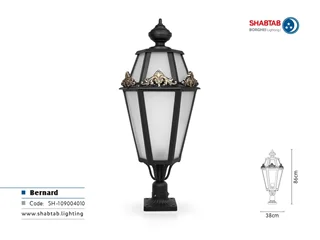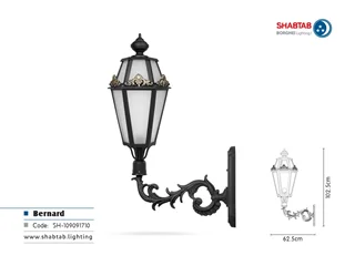 ویژگی‌های چراغ برنارد:بدنه محکم و بادوام از جنس آلومینیوم دارای سرپیچ استاندارد سرامیکی کارکرد مناسب چراغ در محیط مرطوب و پرگرد و غبار رنگ پودری الکترواستاتیک (مقاوم در برابر UV)آب بندی مناسب در فضای بیرون سهولت در نصب و نگهداری بازدهی مناسب نور
