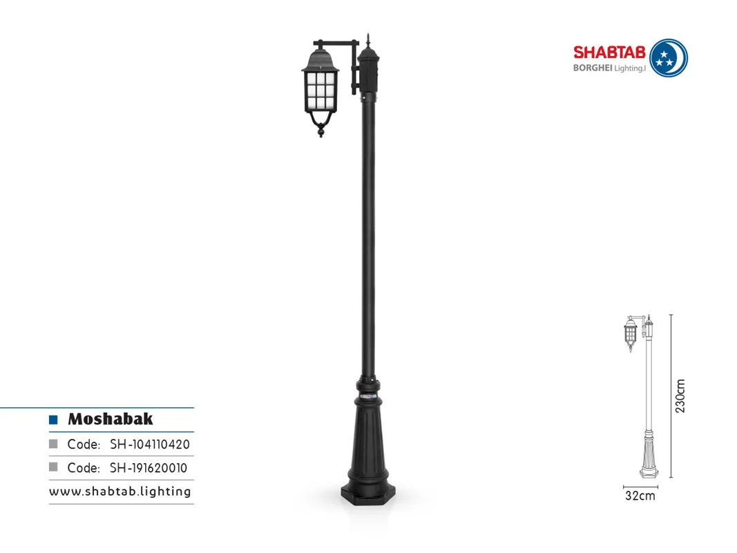 چراغ پارکی تک شاخه شب تاب مدل مشبک - پایه سرو