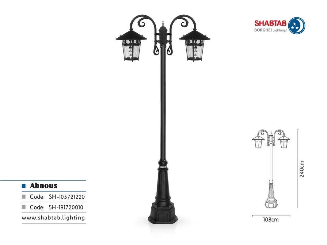 چراغ پارکی دوشاخه شب تاب مدل آبنوس - پایه صنوبر