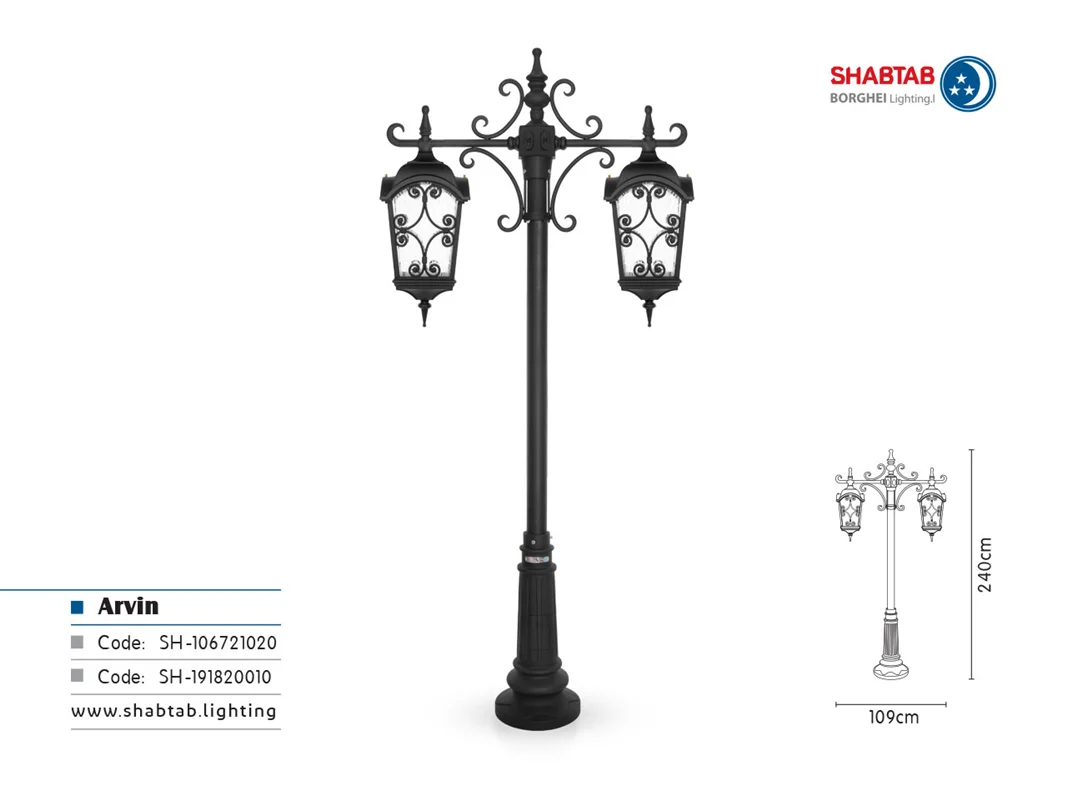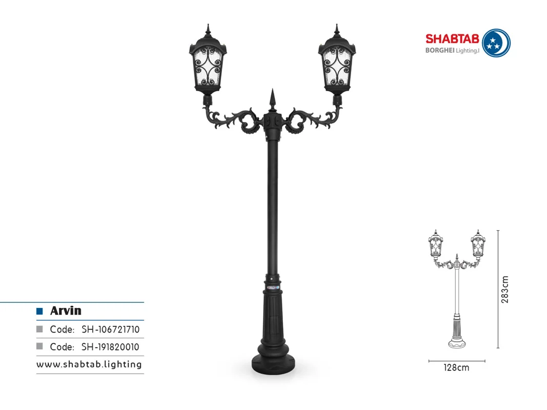 چراغ پارکی دوشاخه شب تاب مدل آروین - پایه نارون