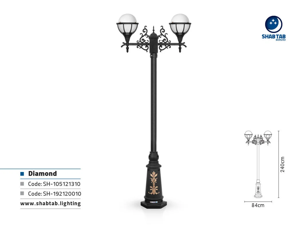 ویژگیهای چراغ دیاموند: استفاده از نوار سیلیکونی بین حباب و بدنه جهت جلوگیری از نفوذ آب و گرد و غبار حباب مقاوم در در برابر UV و ضربه دارای سرپیچ استاندارد سرامیکی دارای بدنه محکم از جنس آلومینیوم دایکست پوشش بدنه رنگ پودری الکترواستاتیک (مقاوم در برابر UV) بازدهی مناسب نور نصب و نگهداری آسان
