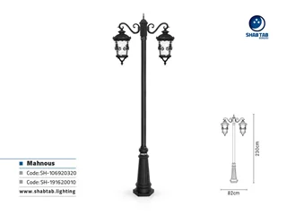 چراغ پارکی شب تاب مدل ماهنوس + دو شاخه سارینا سربالا + پایه ارغوان
