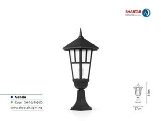 ویژگی‌های چراغ وندا: بدنه محکم از جنس آلومینیوم دایکست حباب نیمه شفاف PMMA مقاوم در برابر UV دارای سرپیچ استاندارد سرامیکی رنگ پودری الکترواستاتیک (مقاوم در برابر UV) آب بندی مناسب در فضای بیرون سهولت در نصب و نگهداری بازدهی عالی نور