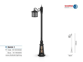 چراغ پارکی شب تاب مدل کارن 1 + دو شاخه سناتور سرازیر + پایه ارغوان